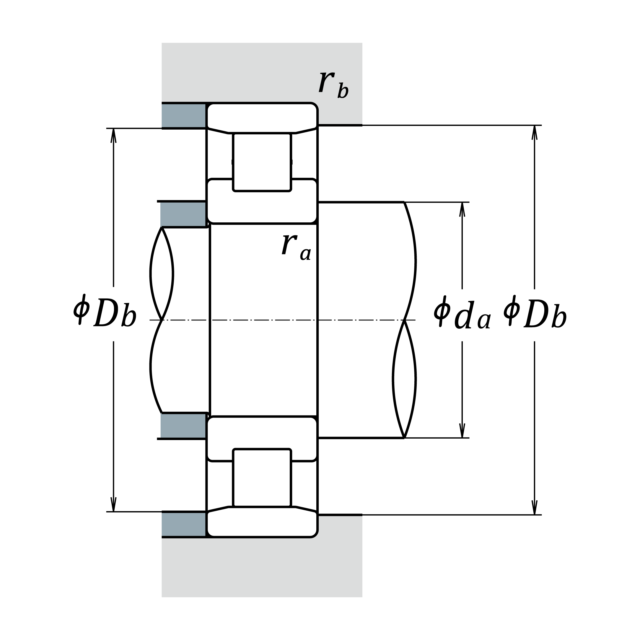 rb (max.) 3 mm Radius of shaft or housing fillet